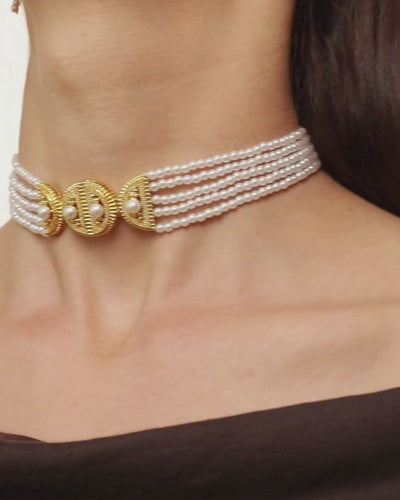 A necklace designed to make you feel poised and powerful. Freshwater pearls bring timeless refinement, while the sculptural 24k gold sphere adds an edge that sets you apart. Pair it with the Ravi Hemisphere Earrings for a complete look that carries confidence from day to night.
