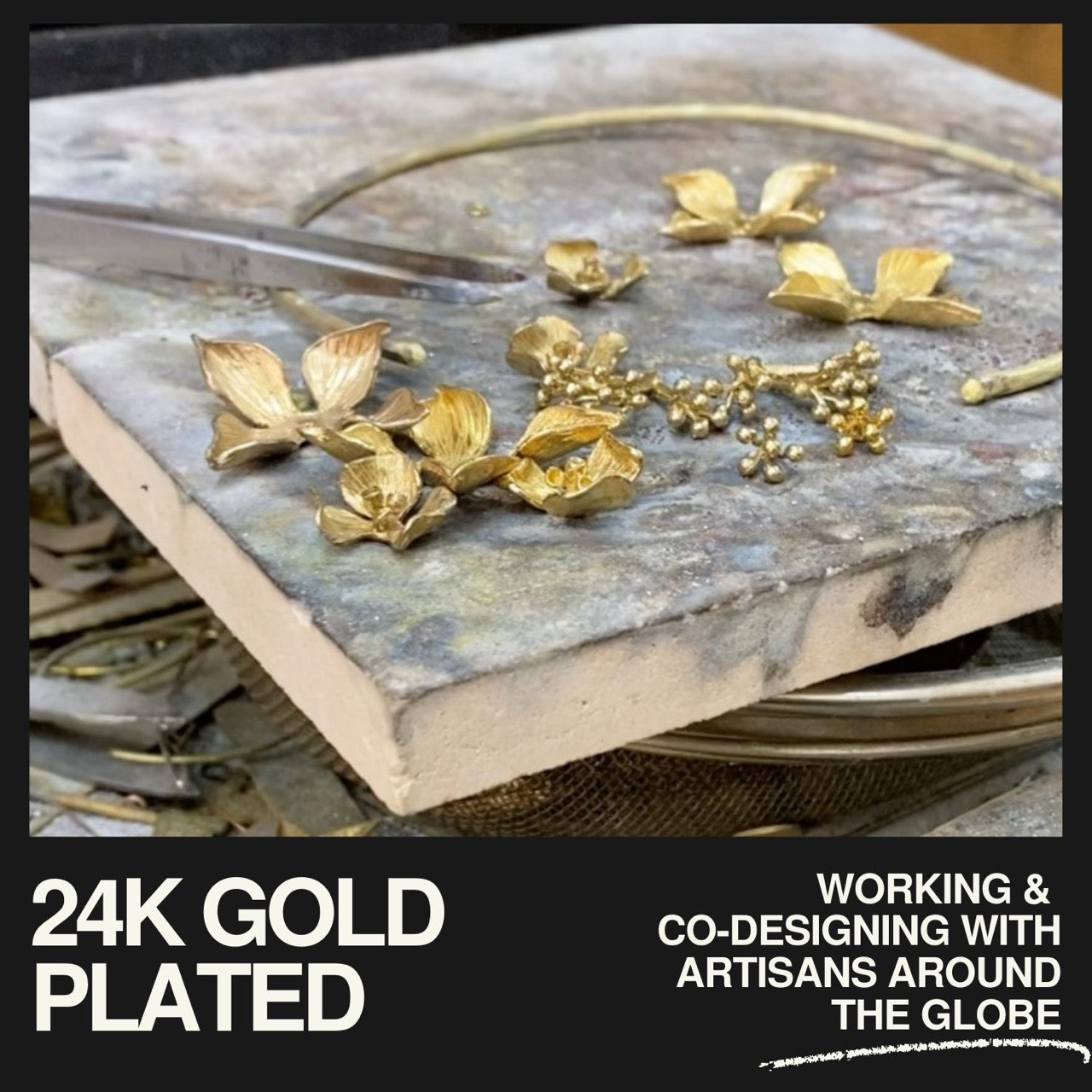 Our jewellery is made from naturally sourced metals. We use brass, silver, and 24-karat gold. We also ensure that all our pieces are light, even our statement ones!