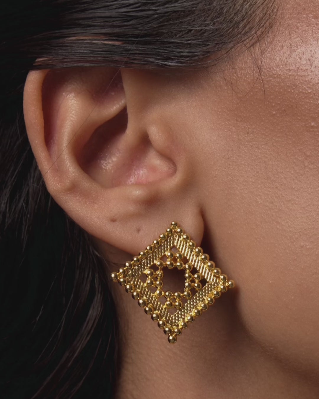 Designed to frame the face with subtle power, these gold diamond earrings bring definition and ease to your look. Elegant enough for meetings, light enough for every day. Pair them with the Ravi Diamond or Pearl Choker to create your statement.
